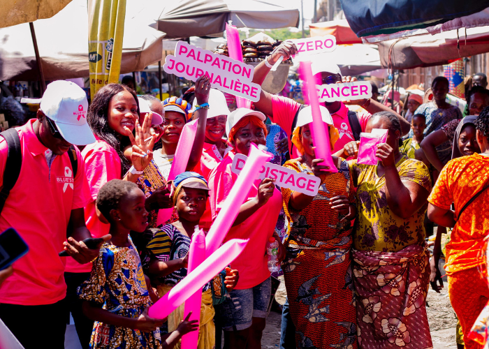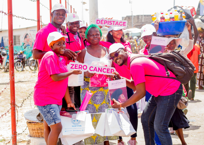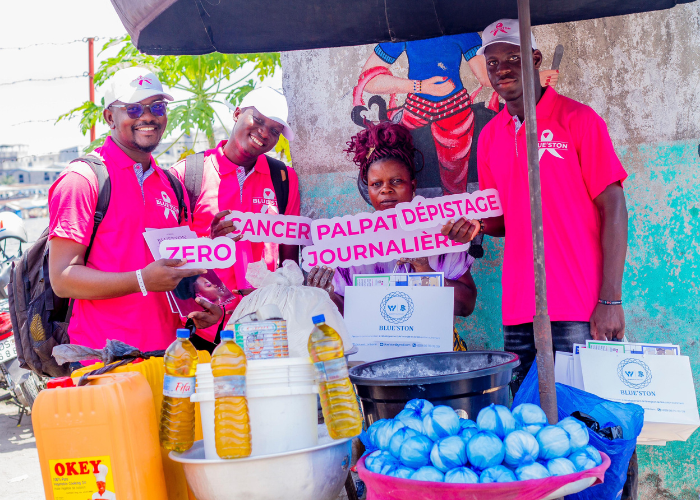 Le cancer du sein est une maladie chronique qui touche une femme sur dix dans le monde. Bien que les campagnes de sensibilisation aient été réalisées, certaines femmes ne sont pas toujours au courant du mal. Saisissant le mois d’octobre rose à profit, l’entreprise BLUE’STON a mis sur place une équipe dynamique qui avec les sponsors Groupe Ruve, Rose art, Class Men Look et Ninos Gloss&Glasse a effectué une sensibilisation sur le cancer du sein. Le marché tokpa de Sigbo-glouè était le lieu où cette sensibilisation sur le cancer du sein a été menée le 28 octobre 2023. Les femmes du marché Tokpa étaient la cible de cette action et d’après les statistiques près de 315 femmes ont bénéficié d'une sensibilisation sur le cancer du sein.